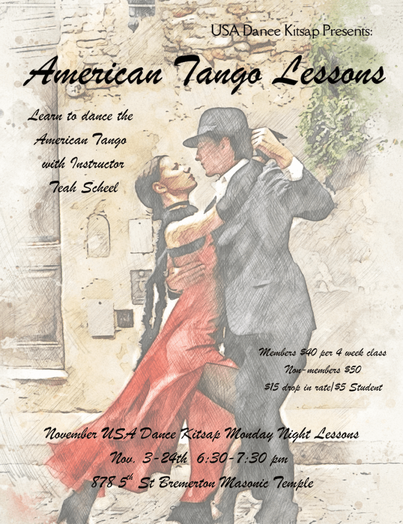 3 Nov. (Mon.) Amerrican Tango lessons start in Bremerton